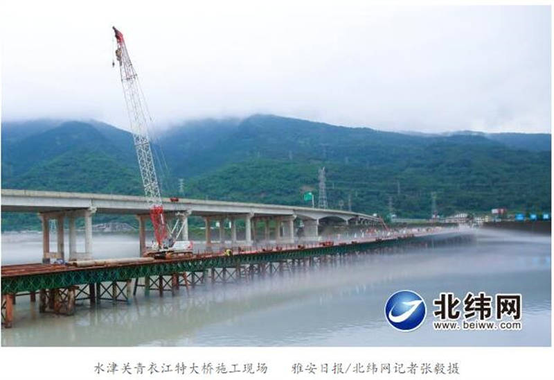 12月17日,在成雅快速通道(雅安段)控制性工程——水津關(guān)青衣江特大橋施工現(xiàn)場(chǎng),此處可見一片熱火朝天的景象。
