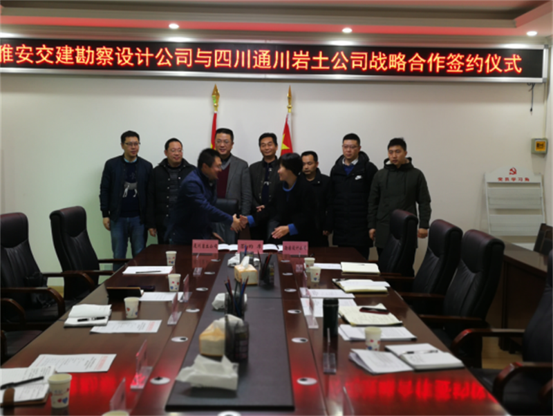 3月7日,雅安交建集團勘察設計有限公司與四川省通川巖土工程技術開發(fā)有限責任公司就公路行業(yè)領域公路工程(勘察、設計)、地質災害治理(勘查、設計)等業(yè)務范圍內的各個方面展開多層次、全方位的合作洽談,并簽訂了戰(zhàn)略合作協(xié)議。集團公司副總經(jīng)理、勘察設計公司執(zhí)行董事兼總經(jīng)理丁春、四川省交通運輸廳公路規(guī)劃勘察設計研究院經(jīng)營處處長邱毅、四川省通川巖土公司總經(jīng)理牟琦等相關人員出席了簽約儀式。