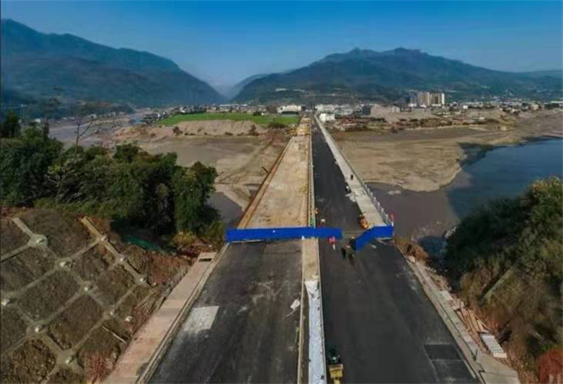 12月24日,雅安多營青衣江大橋已貫通的半幅橋面和兩端引道已完成路面鋪設(shè)和護欄安裝,另半幅橋面完成澆筑,開始橋面鋪設(shè),大橋即將