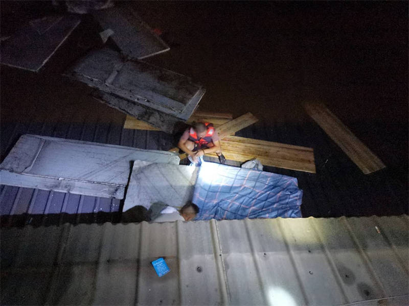 “感謝3名值班人員及時(shí)打電話通知我,否則后果不堪設(shè)想!焙(jiǎn)敬奎說(shuō),回想起昨晚的情形,心里還是有些后怕。當(dāng)時(shí),他接到值班人員電話后,發(fā)現(xiàn)門(mén)衛(wèi)室外的洪水已經(jīng)逼近脖子,無(wú)法順利撤離,洪水漲勢(shì)又快,不一會(huì)兒,他只得爬上門(mén)衛(wèi)室頂端才能避免被水淹沒(méi)。后來(lái),洪水沖來(lái)了一棵樹(shù),簡(jiǎn)敬奎借助這棵樹(shù)慢慢轉(zhuǎn)移到了附近一棵較高大的樹(shù)上繼續(xù)躲避,直至黃志和方華軍前來(lái)營(yíng)救。