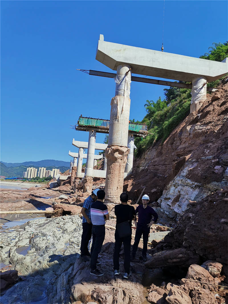 8月26日,項(xiàng)目公司邀請(qǐng)西南交通大學(xué)結(jié)構(gòu)專家到省道104線草壩至姚橋段、草壩青衣江大橋(茶地坎碼頭渡改橋)、多營青衣江大橋(搭溝漩碼頭渡改橋)等涉水工程項(xiàng)目進(jìn)行現(xiàn)場踏勘,檢查橋梁墩臺(tái)、防護(hù)工程結(jié)構(gòu)等情況,并就相關(guān)項(xiàng)目安全狀況及結(jié)構(gòu)物的加固提出了專業(yè)意見。