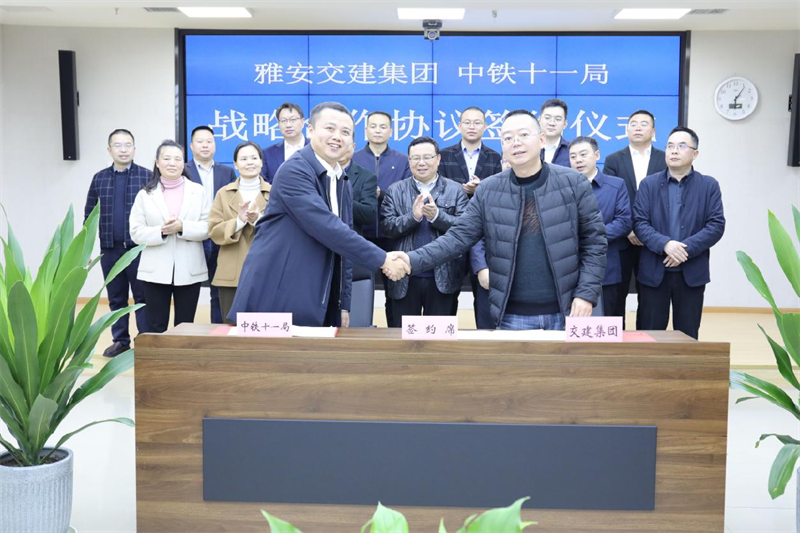 呂涵表示,中鐵十一局在承建川藏鐵路建設(shè)項目中,已與雅安交建集團(tuán)建立了部分合作關(guān)系,結(jié)下了深厚友誼。希望雙方通過簽訂戰(zhàn)略合作協(xié)議,發(fā)揮各自在資源、資金、技術(shù)、人才、管理等方面優(yōu)勢,選擇符合國家法律和宏觀調(diào)控政策的合作領(lǐng)域,創(chuàng)新合作方式,注重合作效果,實現(xiàn)互利雙贏,建立長久友誼,共同為加快建設(shè)“川藏鐵路第一城、綠色發(fā)展示范市”、促進(jìn)雅安經(jīng)濟(jì)社會發(fā)展貢獻(xiàn)國有企業(yè)的力量。