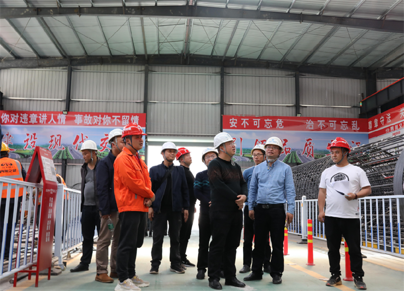 羅倫全一行通過聽取介紹、實(shí)地查看、座談交流的方式,重點(diǎn)就項目部駐地規(guī)范化、精細(xì)化建設(shè),鋼筋加工場、拌合站、隧道洞口等主要施工場地的場地規(guī)劃、安全設(shè)施布置,鋼筋加工場和拌合站智能化、標(biāo)準(zhǔn)化作業(yè),隧道工程科學(xué)化施工、黨建文化生活、勞務(wù)管理等進(jìn)行全面學(xué)習(xí)交流。