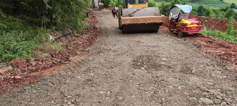 在路橋公司承接的“世界銀行貸款蘆山地震災(zāi)后恢復(fù)重建天全縣始陽至新華農(nóng)村公路”項(xiàng)目天全縣新華鄉(xiāng)柏樹村至永安村段,其村道路面結(jié)構(gòu)層差,路基窄,雨水多,晴通雨阻,對(duì)本地農(nóng)產(chǎn)品外運(yùn)造成很大困擾,嚴(yán)重影響了民眾的生產(chǎn)生活。為積極響應(yīng)市委市政府加快雅安市“四好農(nóng)村路”的部署安排,解決當(dāng)?shù)卮迕癯鲂须y、本土農(nóng)產(chǎn)品外銷滯后等問題,路橋公司天全項(xiàng)目部主動(dòng)作為,在推進(jìn)項(xiàng)目部主體建設(shè)的同時(shí),堅(jiān)持以問題為導(dǎo)向,采用“始新路”施工現(xiàn)場(chǎng)自拌水穩(wěn)料,為村民鋪設(shè)了一段長(zhǎng)臨時(shí)水穩(wěn)路面,方便廣大村民順利出行,促進(jìn)當(dāng)?shù)剞r(nóng)產(chǎn)品物資交流。