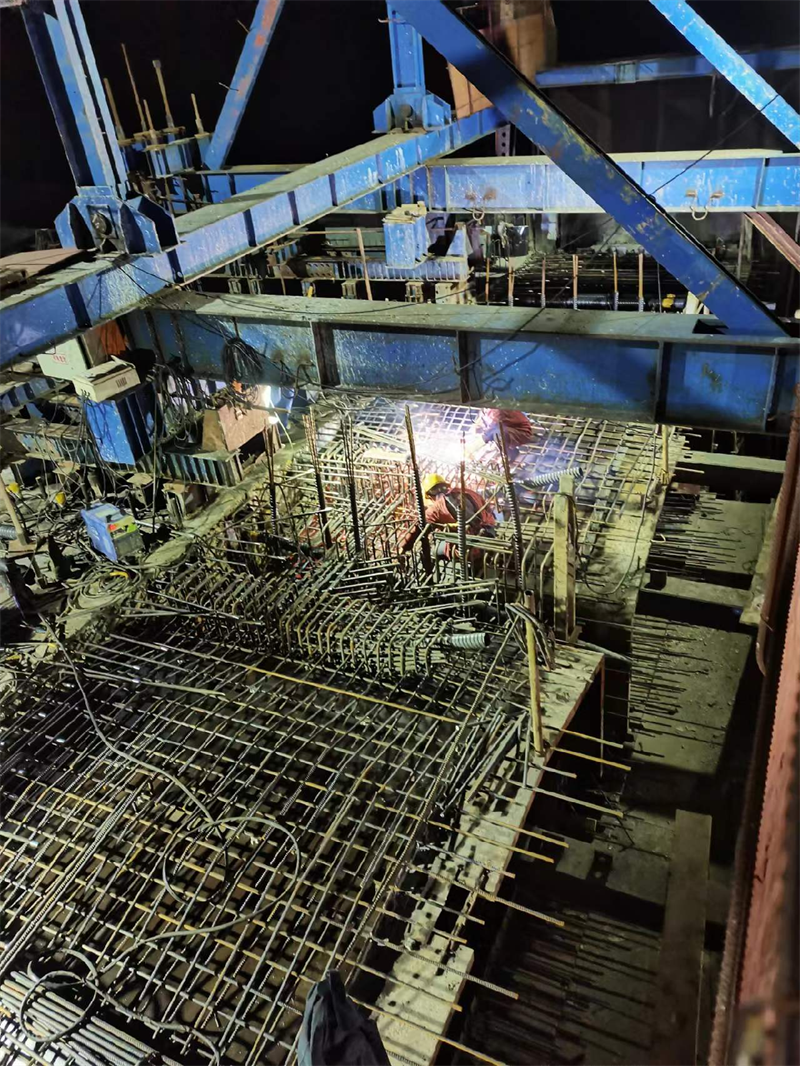 為確保項目高效推進,交建路橋搶抓黃金工期,共投入14臺設(shè)備、70余人,加班加點、挑燈夜戰(zhàn)綁扎K3+415成雅高速跨線大橋邊跨現(xiàn)澆段鋼筋。工地現(xiàn)場燈火通明,機械轟鳴,施工人員揮汗如雨,一派繁忙景象,工程建設(shè)井然有序。此次搶工,為后續(xù)項目施工積蓄了發(fā)展動能,同時也保障了項目總體目標(biāo)的實現(xiàn)。