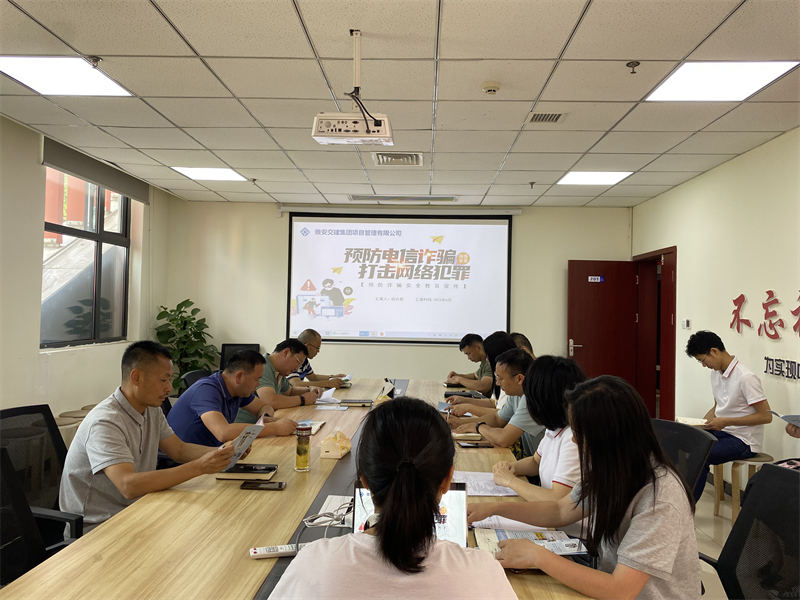 通過(guò)反詐騙知識(shí)宣講,進(jìn)一步增強(qiáng)了員工防騙意識(shí)。項(xiàng)目公司將通過(guò)深入各項(xiàng)目發(fā)放宣傳資料、觀看反詐視頻等多種宣傳形式,持續(xù)開(kāi)展反詐宣傳工作,有效提升全體員工防詐反詐意識(shí),筑牢預(yù)防電信詐騙案件防線,切實(shí)維護(hù)公司和員工財(cái)產(chǎn)安全。