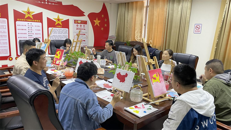 活動(dòng)中,大家興致勃勃地領(lǐng)取了畫筆、顏料、油畫框等工具,即刻投入到繪畫狀態(tài)中。他們一筆一劃仔細(xì)斟酌、認(rèn)真構(gòu)思,充分發(fā)揮想象,通過精心的布局、豐富的色彩,繪出自己熱愛黨的心聲,勾勒出紅色印記,用色彩點(diǎn)燃愛國(guó)情懷,為迎接黨的二十大勝利召開獻(xiàn)上一份真摯的祝福。