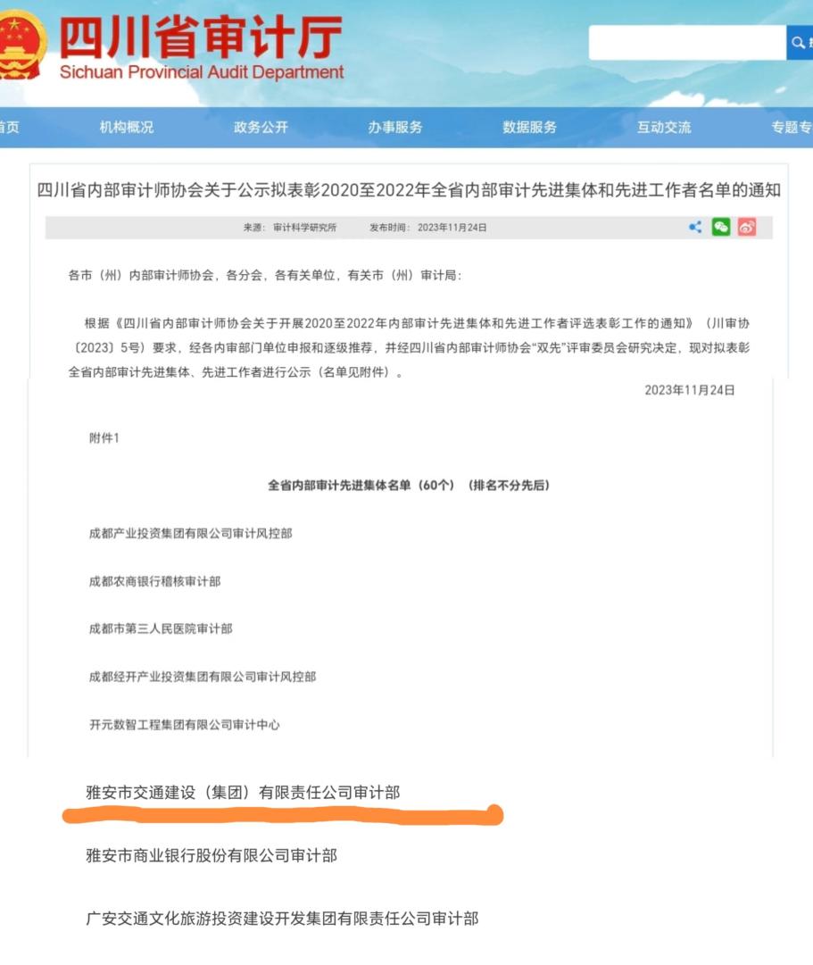 雅安交建集團(tuán)黨委高度重視內(nèi)部審計(jì)工作,公司成立獨(dú)立內(nèi)審機(jī)構(gòu),由集團(tuán)黨委書(shū)記、董事長(zhǎng)直接分管,按照內(nèi)審計(jì)劃和黨委、董事會(huì)安排,獨(dú)立開(kāi)展工作,并定期向黨委、董事會(huì)匯報(bào)內(nèi)審工作開(kāi)展情況。近年來(lái),公司已建立《內(nèi)部審計(jì)工作管理辦法》《經(jīng)濟(jì)責(zé)任審計(jì)實(shí)施細(xì)則》等內(nèi)部審計(jì)制度,通過(guò)全面審計(jì)、專(zhuān)項(xiàng)審計(jì)和“1+N”內(nèi)部監(jiān)督檢查工作機(jī)制,規(guī)范集團(tuán)及子公司制度建設(shè),提升管理水平,助力集團(tuán)創(chuàng)建“千億國(guó)企,品質(zhì)交建”。