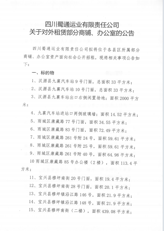 ËÄ´¨Êñͨß\(y¨´n)˜I(y¨¨)ÓÐÏÞØŸ(z¨¦)Èι«Ë¾êP(gu¨¡n)ÓÚŒ¦Íâ×âÙU²¿·ÖéTÃæ¡¢Þk¹«ÊÒÙY®a(ch¨£n)µÄ¹«¸æ