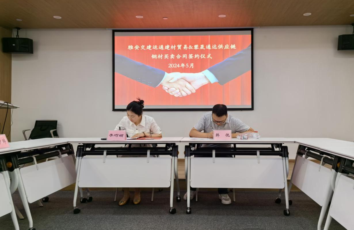 近日,雅安交建集團運通建材貿(mào)易有限公司(以下簡稱:建材公司)與四川蓉晟通達供應(yīng)鏈管理有限公司(以下簡稱:蓉晟通達公司)在成都舉行鋼材買賣合同簽約儀式,標志著建材公司順利完成2024年度首個市外貿(mào)易業(yè)務(wù)的簽訂工作,且合同金額超2300萬元。
