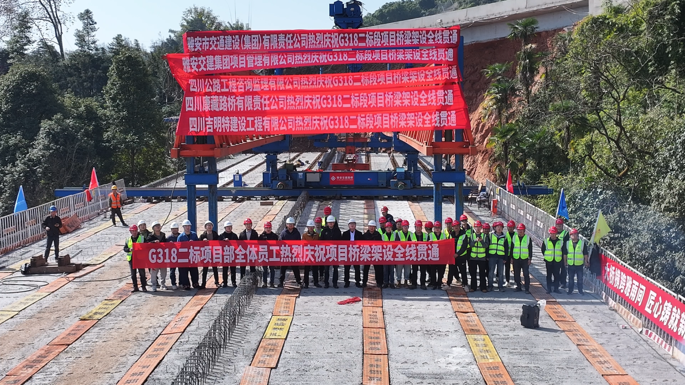2月11日,隨著白果塘大橋最后一片T梁精準(zhǔn)架設(shè)就位,國道318名山區(qū)黑竹(成都界)至雨城區(qū)多營段改建工程二標(biāo)段實現(xiàn)全線貫通。