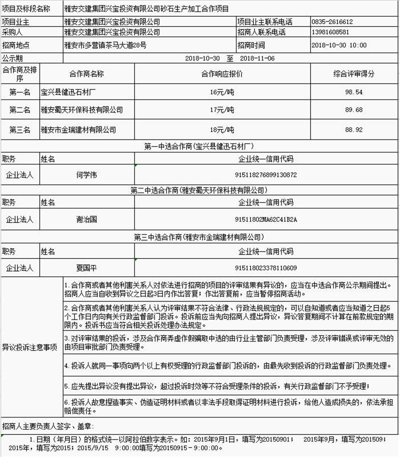 雅安交建集團興寶投資有限公司砂石生產(chǎn)加工合作項目公示