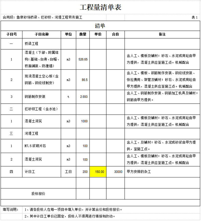 現(xiàn)將魚泉砂場橋梁、攔砂壩、河堤工程勞務施工招標文件,作如下修改(補充):