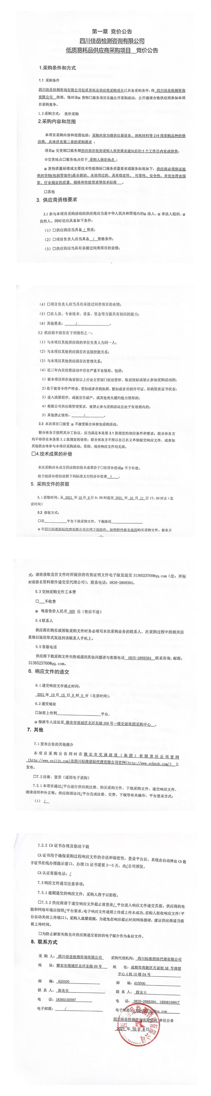 四川佳岳檢測咨詢有限公司低質(zhì)易耗品供應(yīng)商采購項(xiàng)目競價公告