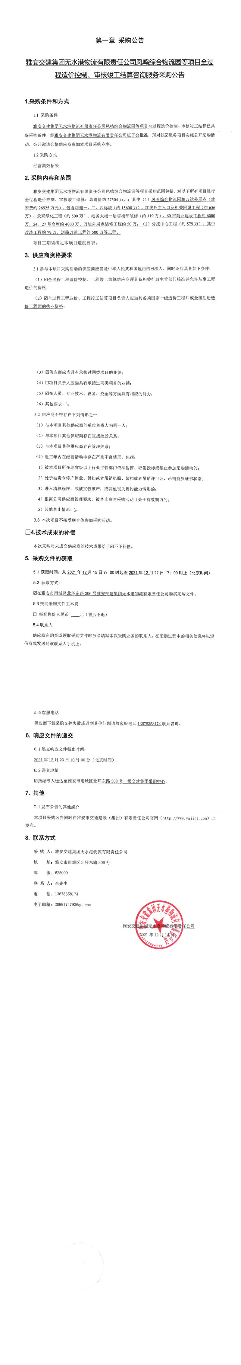 雅安交建集團(tuán)無水港物流有限責(zé)任公司鳳鳴綜合物流等項(xiàng)目全過程造價(jià)控制、審核竣工結(jié)算咨詢服務(wù)采購公告