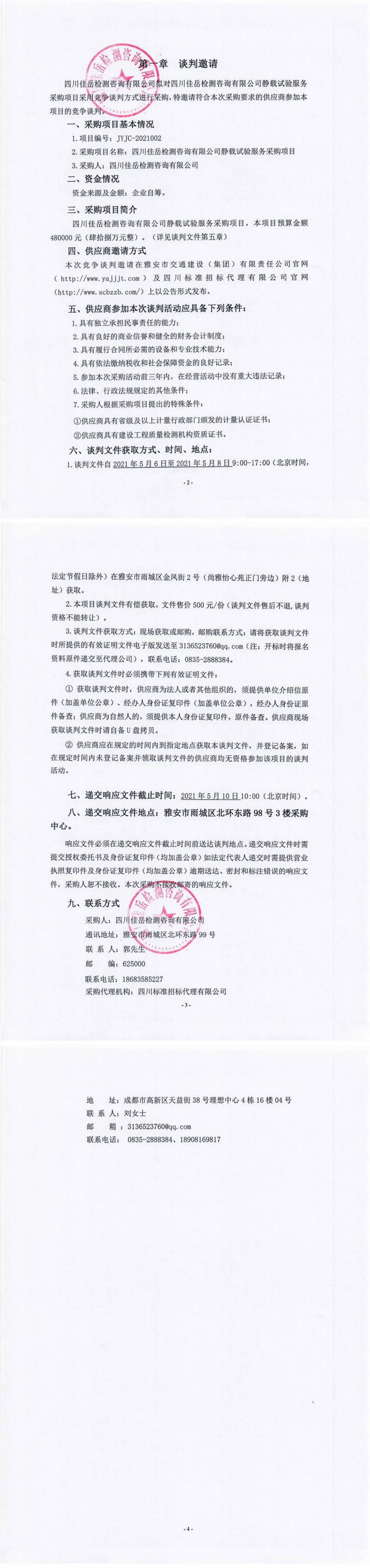 四川佳岳檢測(cè)咨詢(xún)有限公司靜載試驗(yàn)服務(wù)采購(gòu)項(xiàng)目競(jìng)爭(zhēng)談判公告