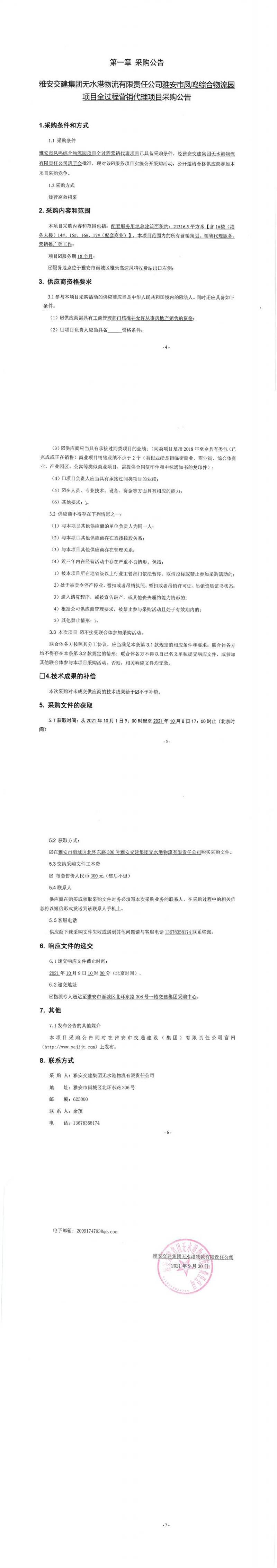 雅安交建集團(tuán)無水港物流有限責(zé)任公司雅安市鳳鳴綜合物流園項(xiàng)目全過程營銷代理項(xiàng)目采購公告