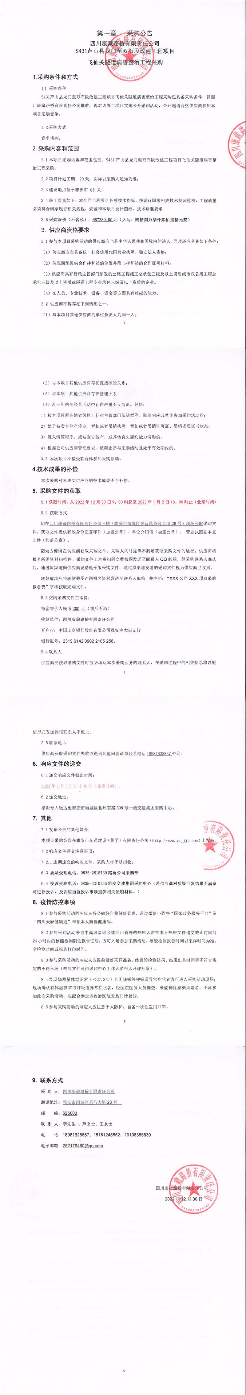 四川康藏路橋有限責任公司S431蘆山縣龍門至雙石段改建工程項目飛仙關(guān)隧道病害整治工程采購采購公告