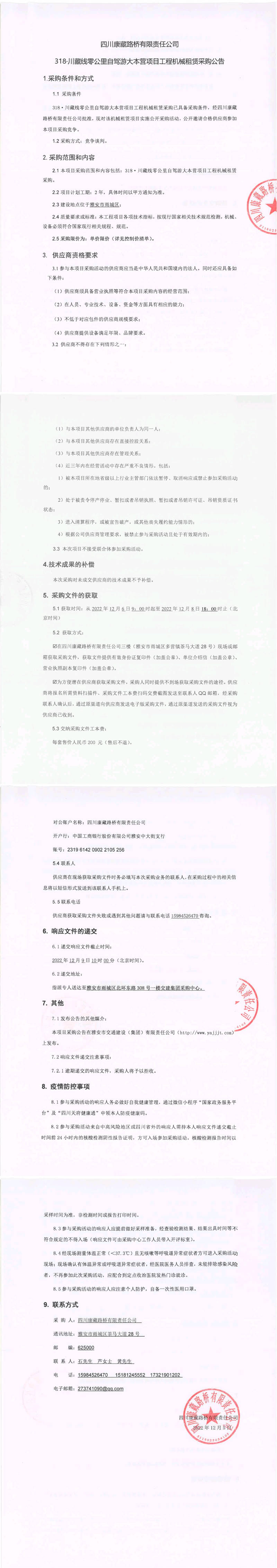 四川康藏路橋有限責任公司318.川藏線零公里自駕大本營項目工程機械租賃采購公告