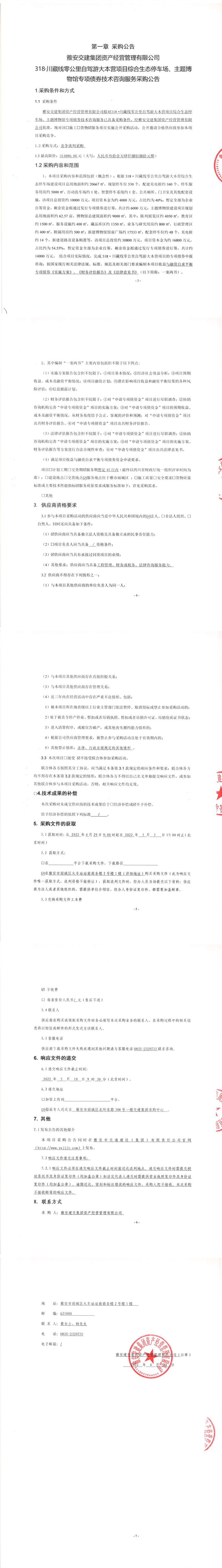 雅安交建集團資產經(jīng)營管理有限公司318.川藏線零公里自駕游大本營項目綜合生態(tài)停車場、主題博物館專項債券技術咨詢服務采購公告