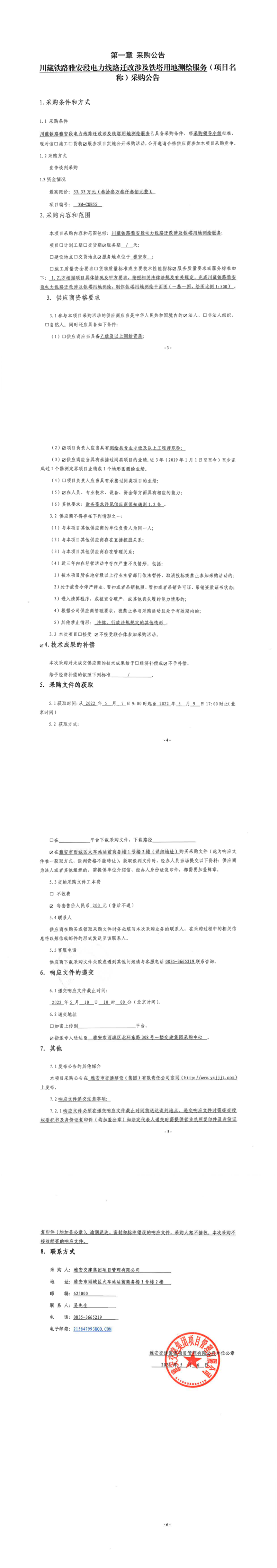 雅安交建集團(tuán)項(xiàng)目管理有限公司川藏鐵路雅安段電力線路遷改涉及鐵塔用地測(cè)繪服務(wù)采購公告