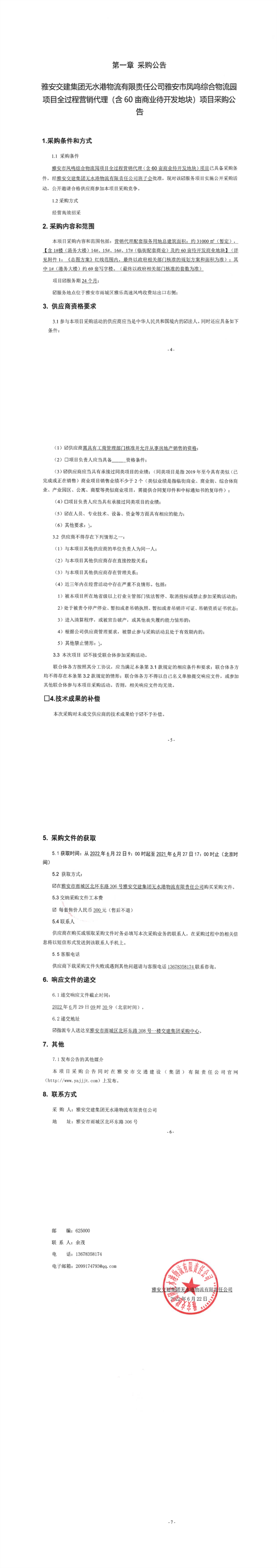 雅安交建集團(tuán)無水港物流有限責(zé)任公司雅安市鳳鳴綜合物流園項(xiàng)目全過程營(yíng)銷代理(含60畝商業(yè)待開發(fā)地塊)項(xiàng)目采購(gòu)公告