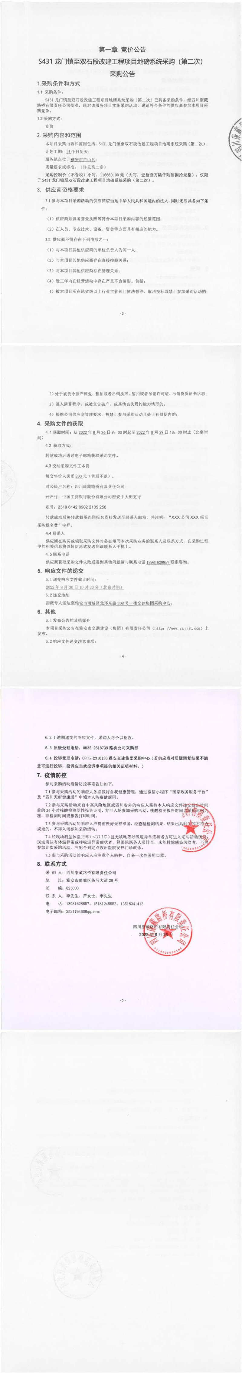 四川康藏路橋有限責任公司S431龍門鎮(zhèn)至雙石段改建工程項目地磅系統(tǒng)采購(第二次)采購公告