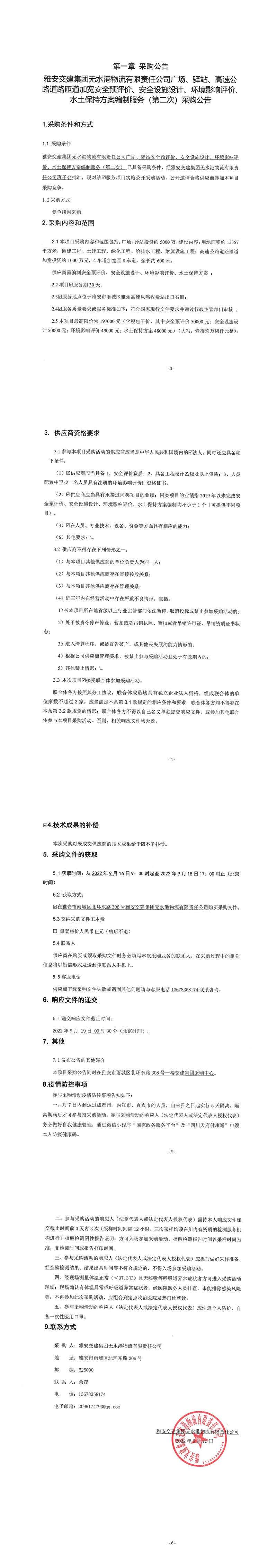雅安交建集團(tuán)無水港物流有限責(zé)任公司廣場、驛站、高速公路道路匝道加寬安全預(yù)評(píng)價(jià)、安全設(shè)施設(shè)計(jì)、環(huán)境影響評(píng)價(jià)、水土保持方案編制服務(wù)(第二次)采購公告