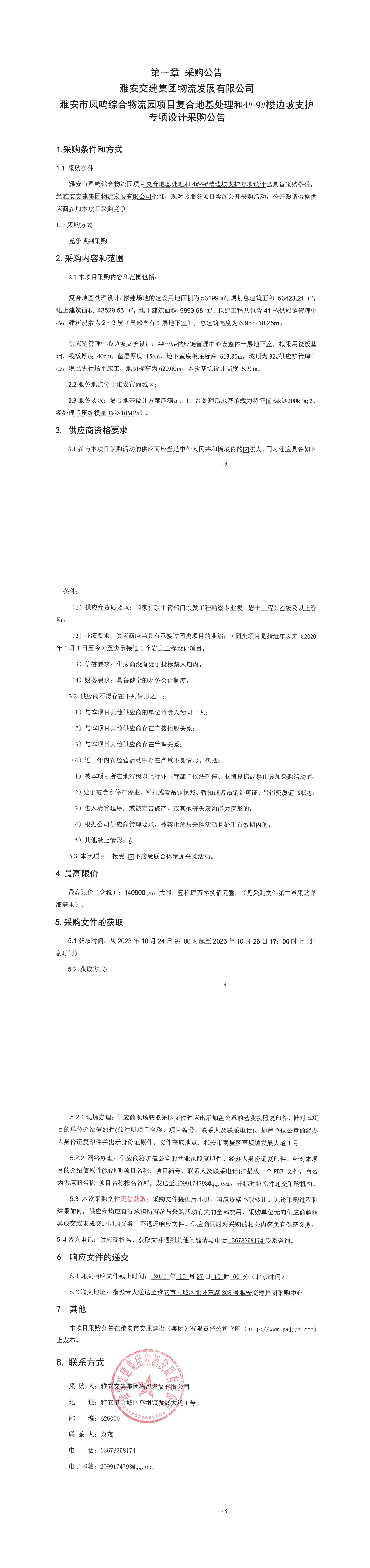 雅安交建集團(tuán)物流發(fā)展有限公司雅安市鳳鳴綜合物流園項(xiàng)目復(fù)合地基處理和4#-9#樓邊坡支護(hù)專(zhuān)項(xiàng)設(shè)計(jì)采購(gòu)公告