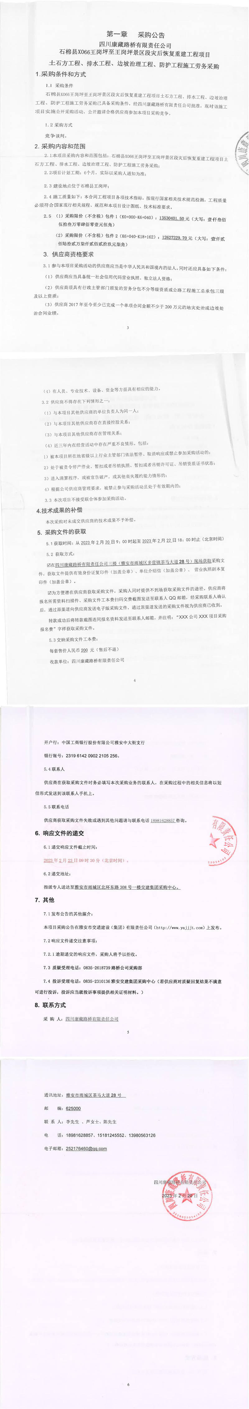 四川康藏路橋有限責任公司石棉縣X066王崗坪至王崗坪景區(qū)段災(zāi)后恢復重建工程項目土石方工程、排水工程、邊坡治理工程、防護工程施工勞務(wù)采購公告