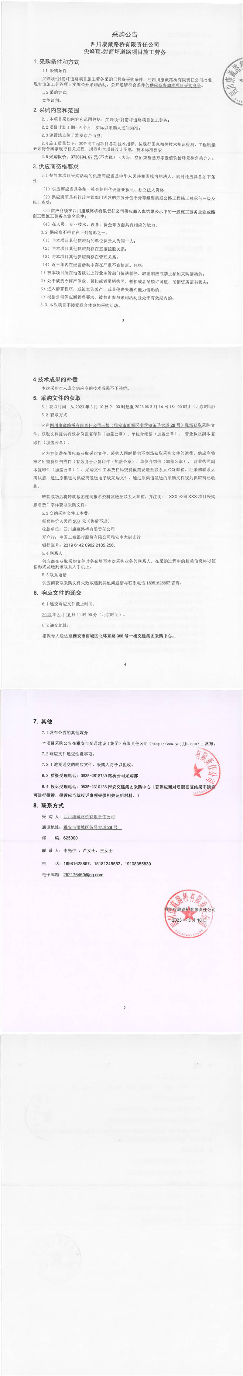 四川康藏路橋有限責(zé)任公司尖峰頂-射箭坪道路項(xiàng)目施工勞務(wù)采購(gòu)公告