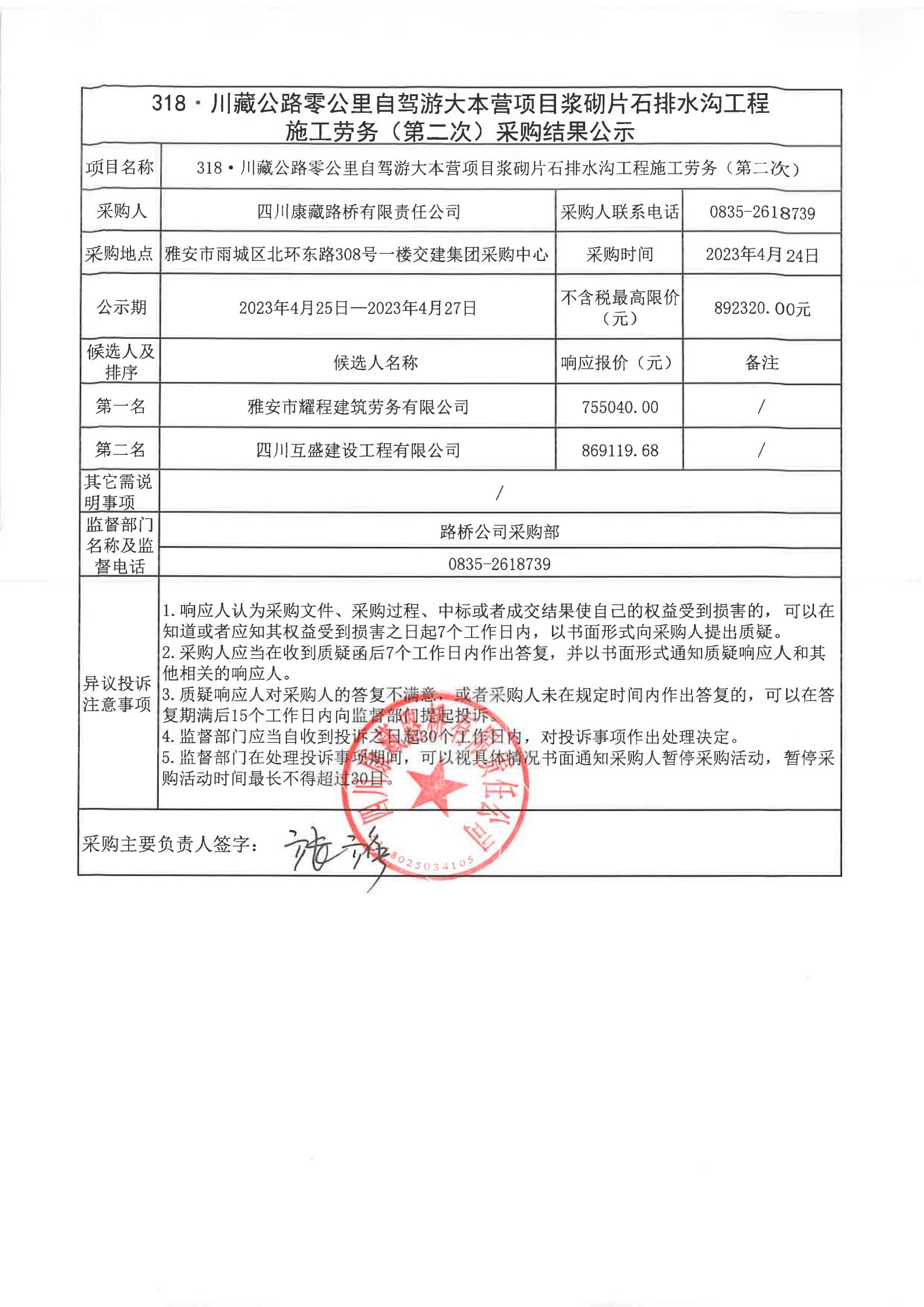 四川康藏路橋有限責任公司318·川藏公路零公里自駕游大本營項目漿砌片石排水溝工程施工勞務(第二次)采購結(jié)果公示