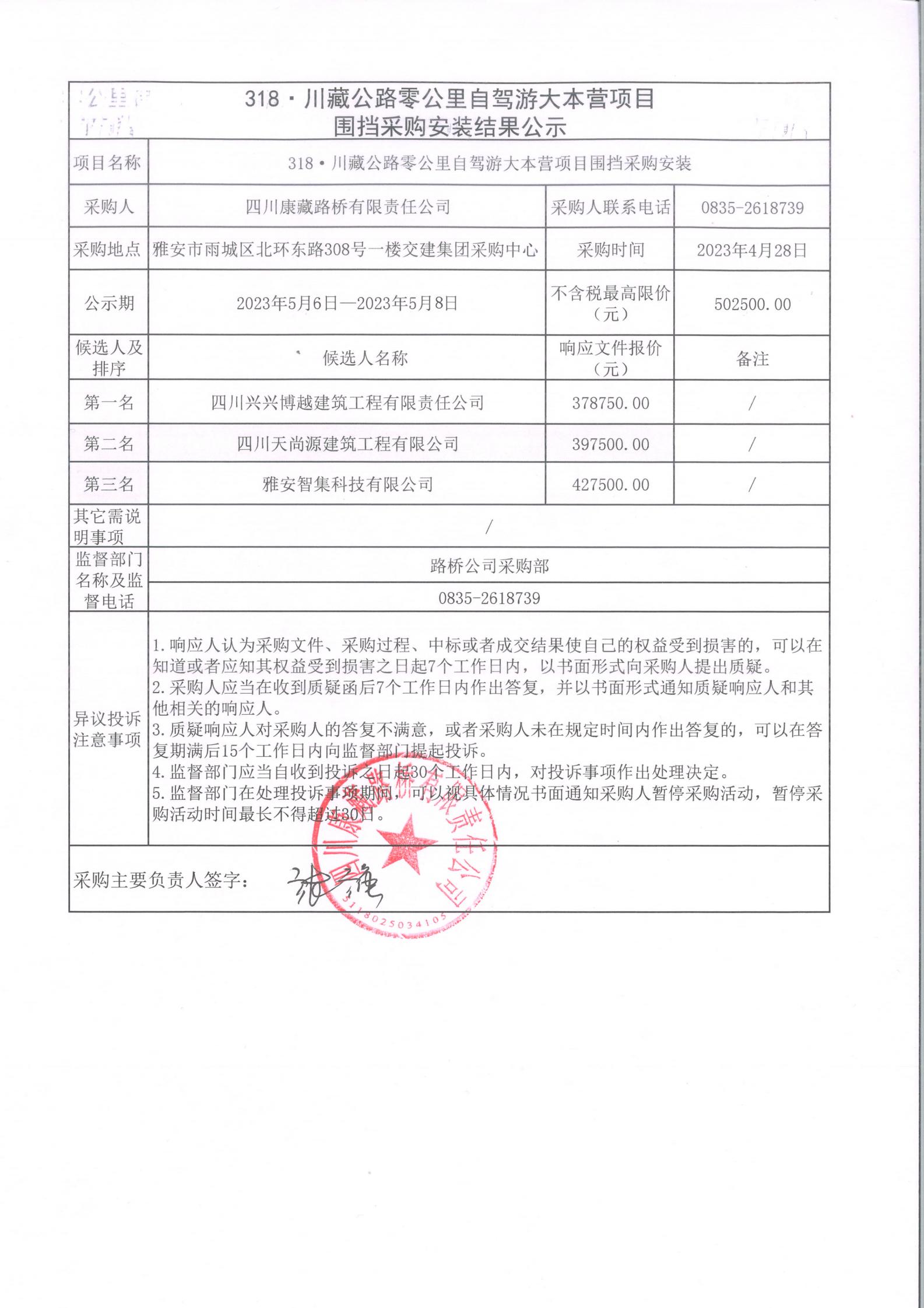 四川康藏路橋有限責(zé)任公司318·川藏公路零公里自駕游大本營項目圍擋采購安裝結(jié)果公示
