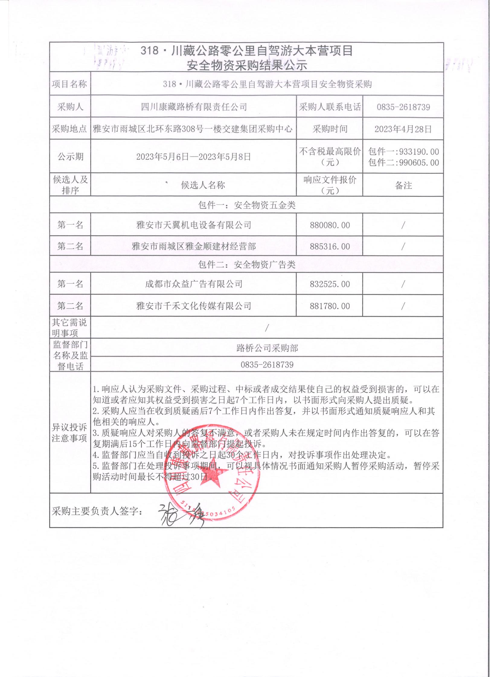 四川康藏路橋有限責(zé)任公司318·川藏公路零公里自駕游大本營項目安全物資采購結(jié)果公示