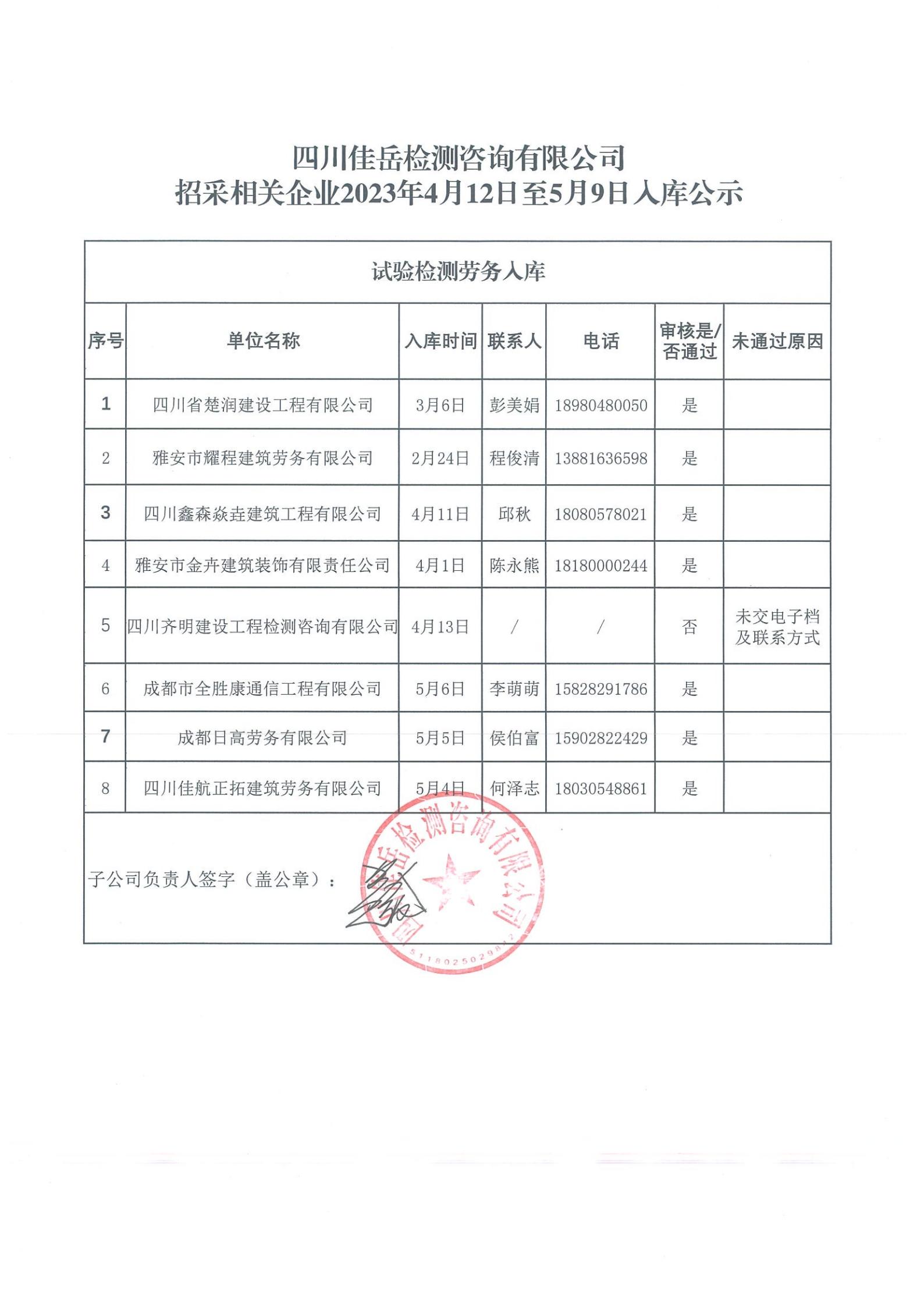 四川佳岳檢測咨詢有限公司(試驗(yàn)檢測勞務(wù)供應(yīng)商庫)2023年4月12日至5月9日入庫結(jié)果公示