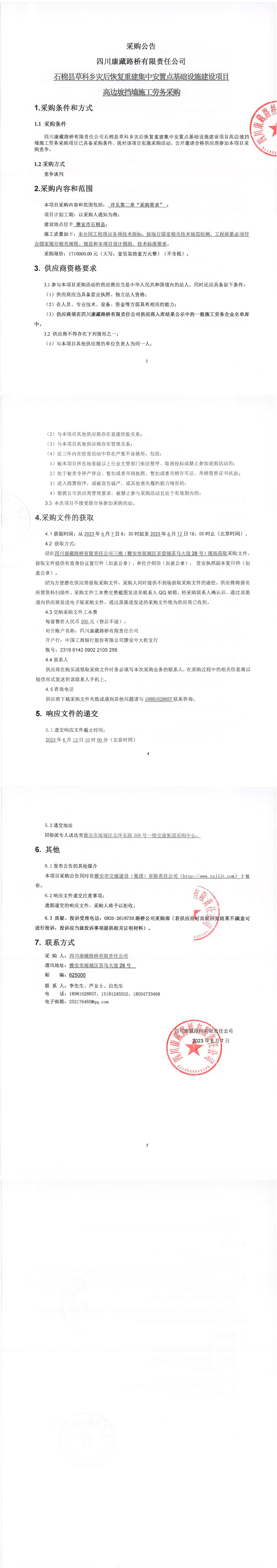 四川康藏路橋有限責(zé)任公司石棉縣草科鄉(xiāng)災(zāi)后恢復(fù)重建集中安置點(diǎn)基礎(chǔ)設(shè)施建設(shè)項(xiàng)目高邊坡?lián)鯄κ┕趧?wù)采購