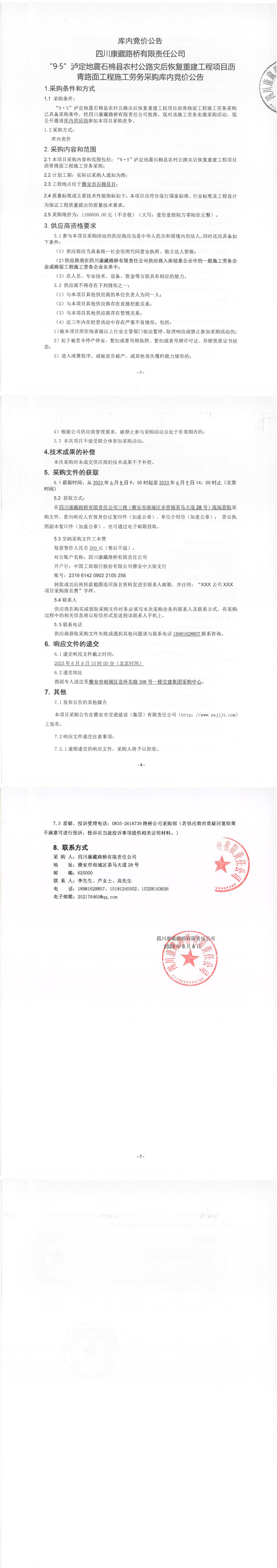 四川康藏路橋有限責(zé)任公司“9·5”瀘定地震石棉縣農(nóng)村公路災(zāi)后恢復(fù)重建工程項(xiàng)目混凝土路面工程施工勞務(wù)采購庫內(nèi)競價(jià)公告