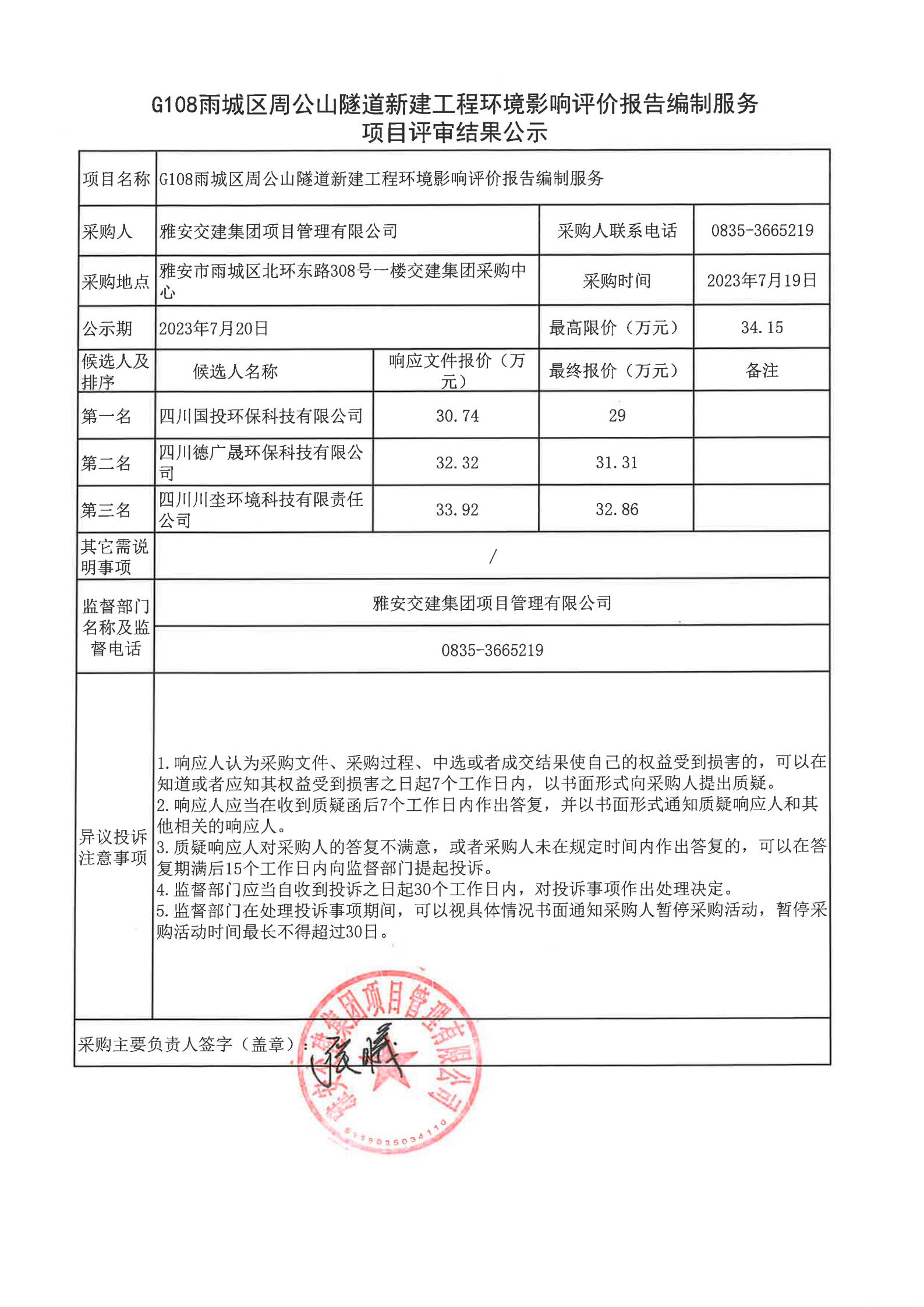 雅安交建集團(tuán)項(xiàng)目管理有限公司G108雨城區(qū)周公山隧道新建工程環(huán)境影響評價(jià)報(bào)告編制服務(wù)項(xiàng)目評審結(jié)果公示