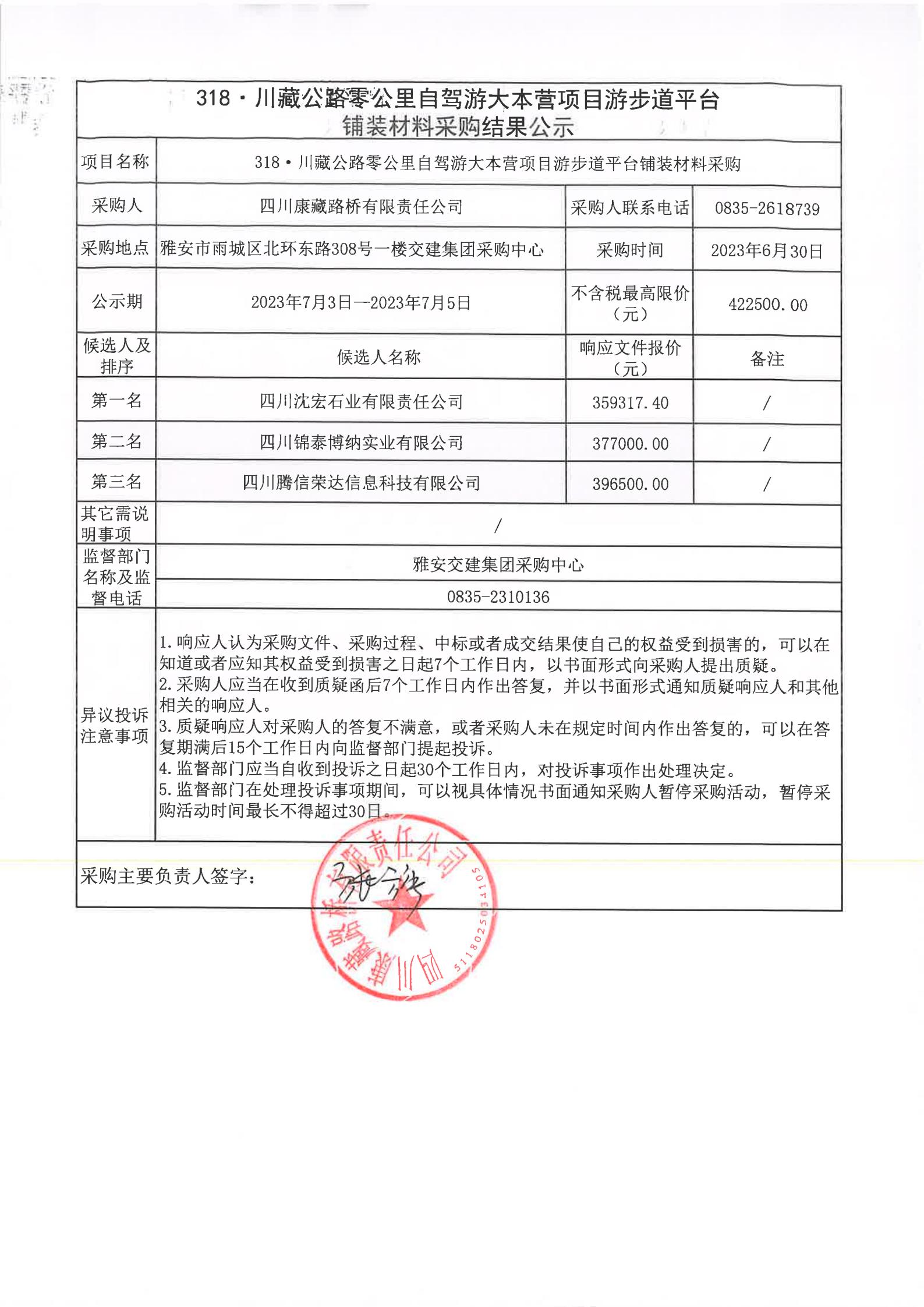 四川康藏路橋有限責(zé)任公司318·川藏公路零公里自駕游大本營項目游步道平臺鋪裝材料采購結(jié)果公示