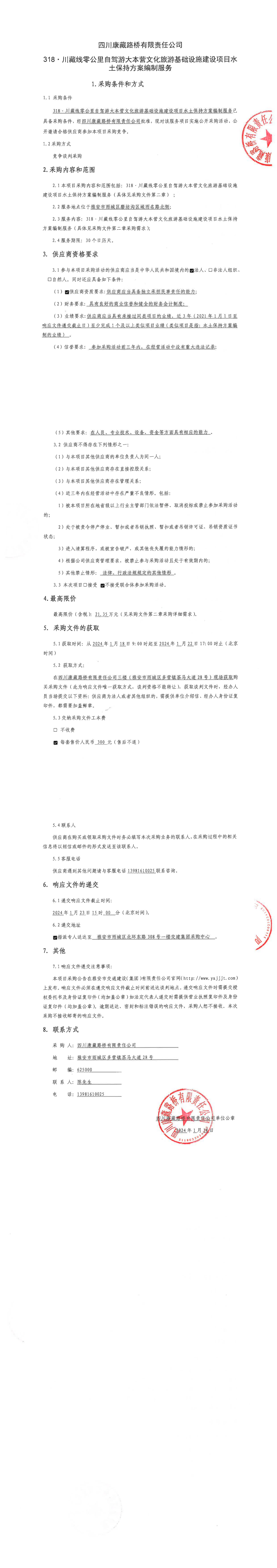 四川康藏路橋有限責(zé)任公司318·川藏線零公里自駕游大本營(yíng)文化旅游基礎(chǔ)設(shè)施建設(shè)項(xiàng)目水土保持方案編制服務(wù)采購公告