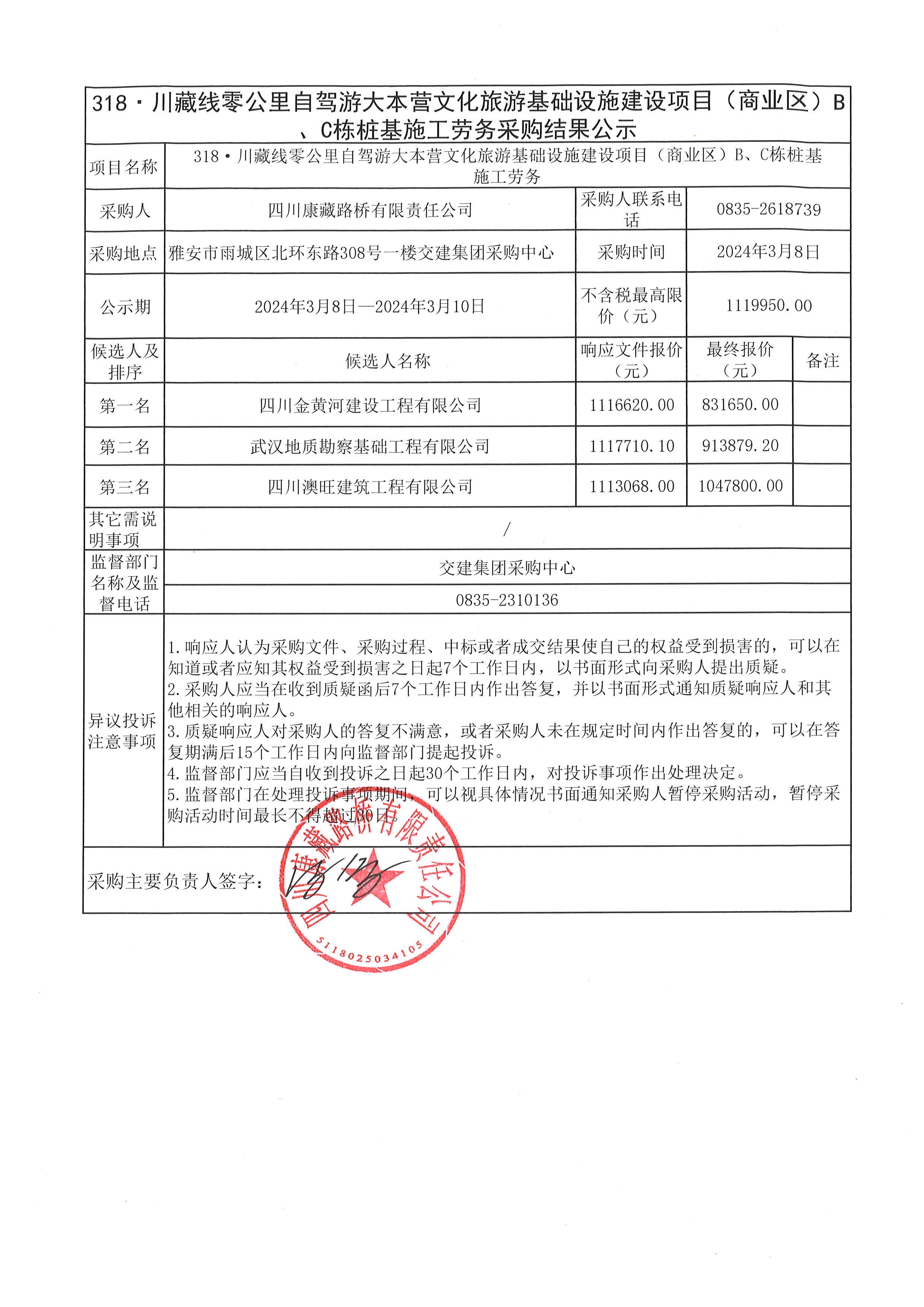 四川康藏路橋有限責任公司318·川藏線零公里自駕游大本營文化旅游基礎(chǔ)設(shè)施建設(shè)項目(商業(yè)區(qū))B、C棟樁基施工勞務(wù)結(jié)果公示