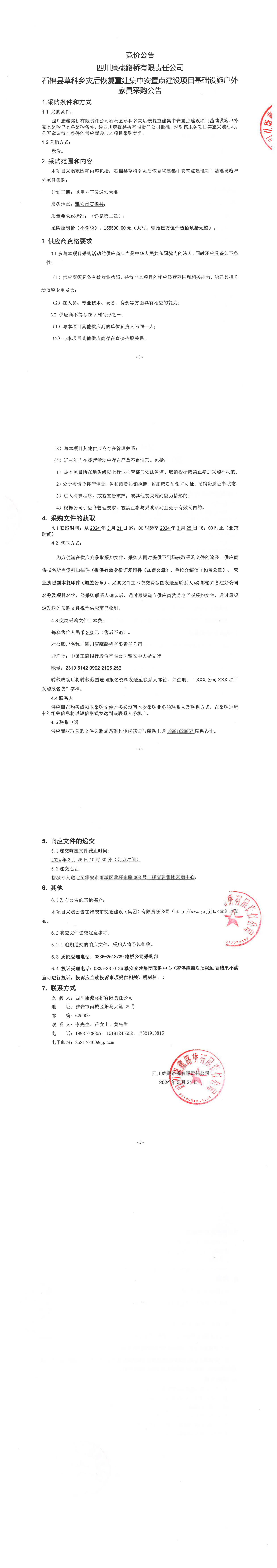 四川康藏路橋有限責任公司石棉縣草科鄉(xiāng)災后恢復重建集中安置點建設項目基礎設施戶外家具采購公告