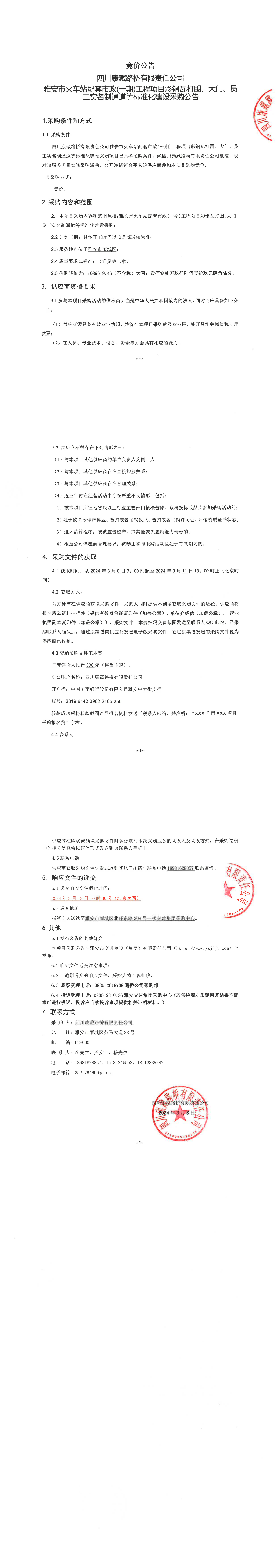 四川康藏路橋有限責(zé)任公司雅安市火車站配套市政(一期)工程項目彩鋼瓦打圍、大門、員工實名制通道等標準化建設(shè)采購公告