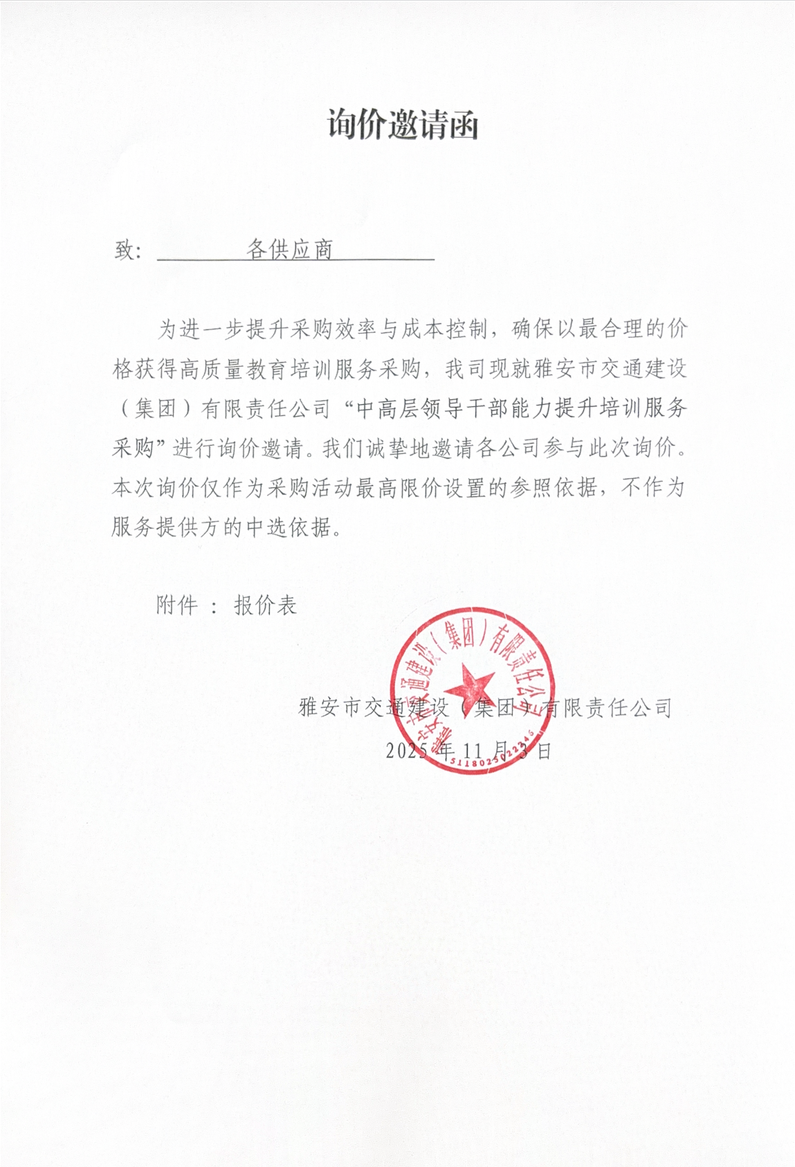 中高層領(lǐng)導(dǎo)干部能力提升培訓(xùn)服務(wù)采購詢價(jià)邀請(qǐng)
