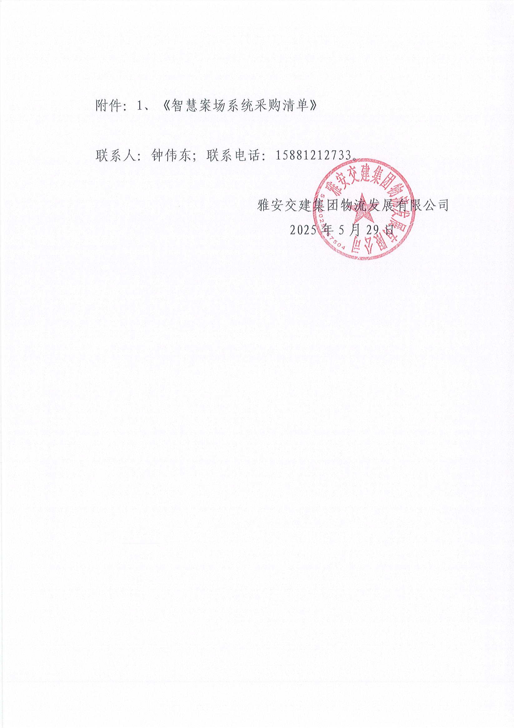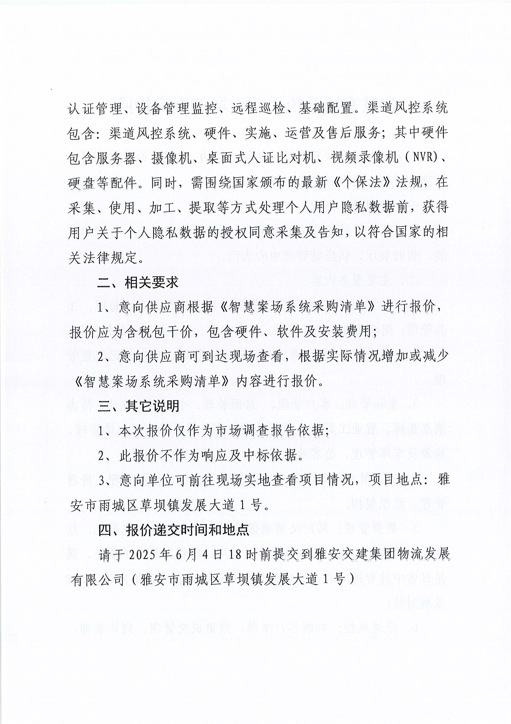 雅安交建集團(tuán)物流發(fā)展有限公司智慧案場系統(tǒng)采購市場調(diào)查詢價(jià)函