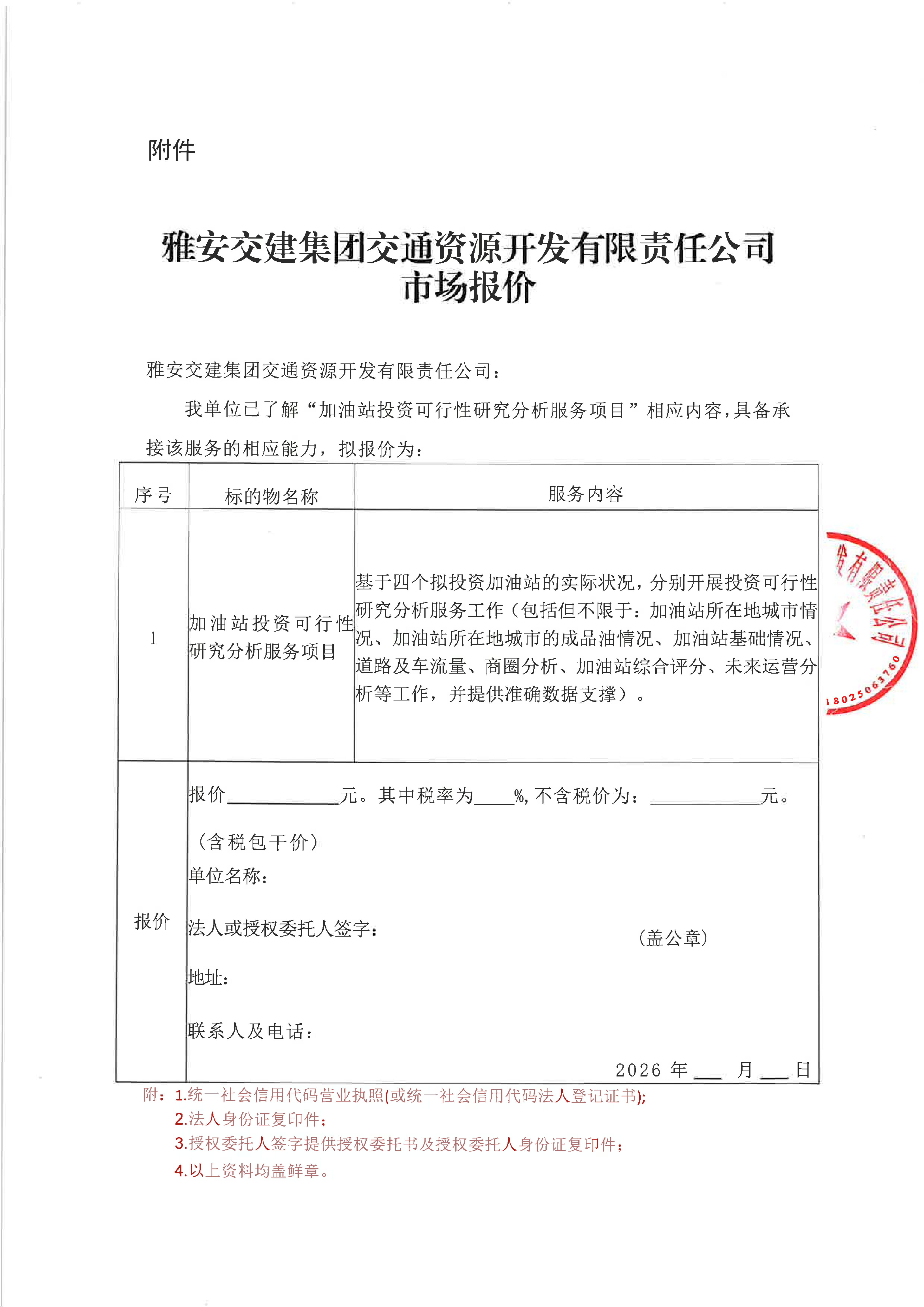 雅安交建集團(tuán)交通資源開發(fā)有限責(zé)任公司加油站投資可行性研究分析服務(wù)項(xiàng)目市場(chǎng)調(diào)查公告
