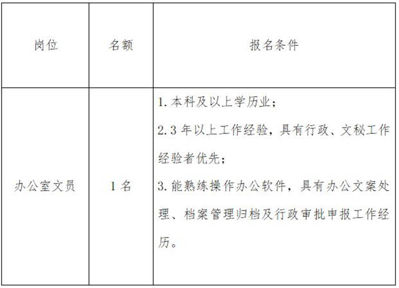 雅安交建集團康居建設(shè)工程質(zhì)量與室內(nèi)環(huán)境污染檢測有限公司是雅安市交通建設(shè)(集團)有限責任公司下屬子公司,主要從事民用建筑室內(nèi)環(huán)境污染檢測業(yè)務。現(xiàn)根據(jù)公司業(yè)務發(fā)展需要,擬向社會公開招聘1名辦公室文員,現(xiàn)將有關(guān)事項公告如下: