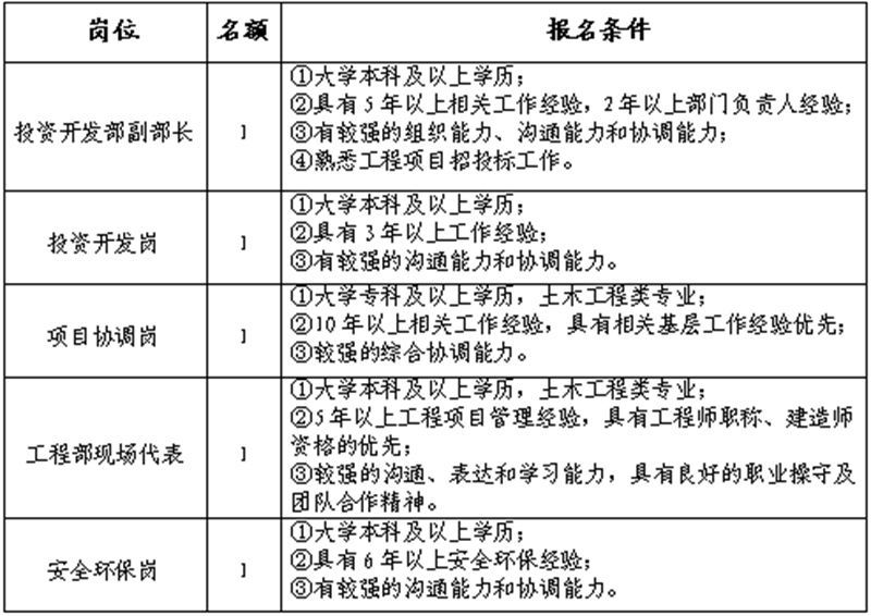 雅安交建集團(tuán)資產(chǎn)經(jīng)營管理有限公司是雅安市重點國有企業(yè)雅安市交建集團(tuán)下屬子公司,主要從事企業(yè)資產(chǎn)經(jīng)營管理;項目投資;土地整理等業(yè)務(wù)。根據(jù)公司發(fā)展需要,決定面向社會公開招聘5名工作人員,現(xiàn)將有關(guān)事項公告如下: