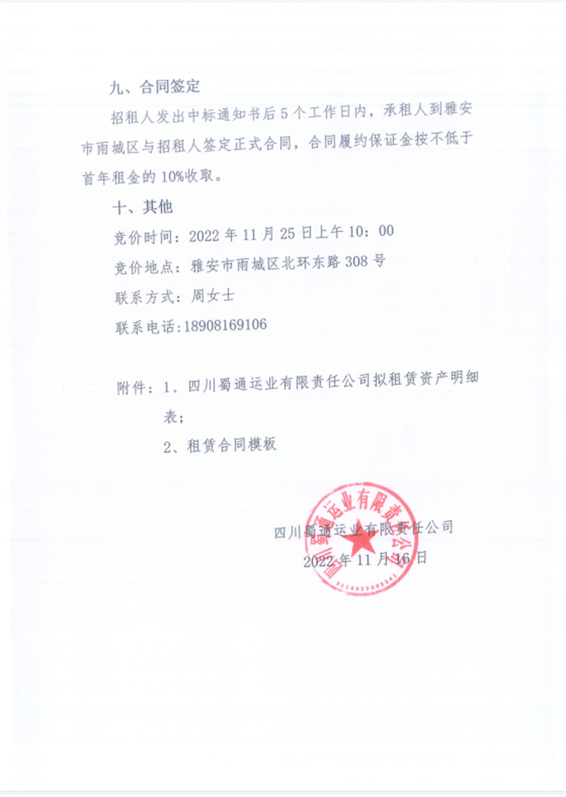 蜀通工作閑置資產(chǎn)招租公告
