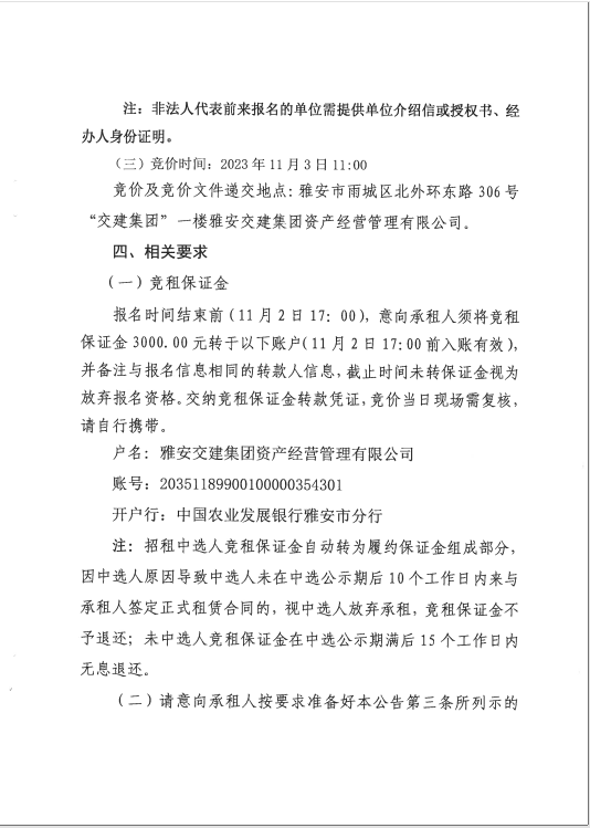 雅安交建集團(tuán)資產(chǎn)經(jīng)營管理有限公司 雨名快速通道(名山服務(wù)區(qū))3號樓商鋪招租公告